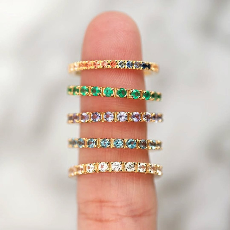 حلقه با سنگ های برلیان گارنت زمرد و اتمی